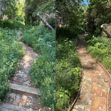 Pulling, weed whacking weeds. Spraying areas that keep them from growing back for up to 2-4 months, or granules spread and watered to help kill and prevent weeds from coming back. Usually dries within an hour but we like to say keep kids and animals off the area for 2 hours to dry out!